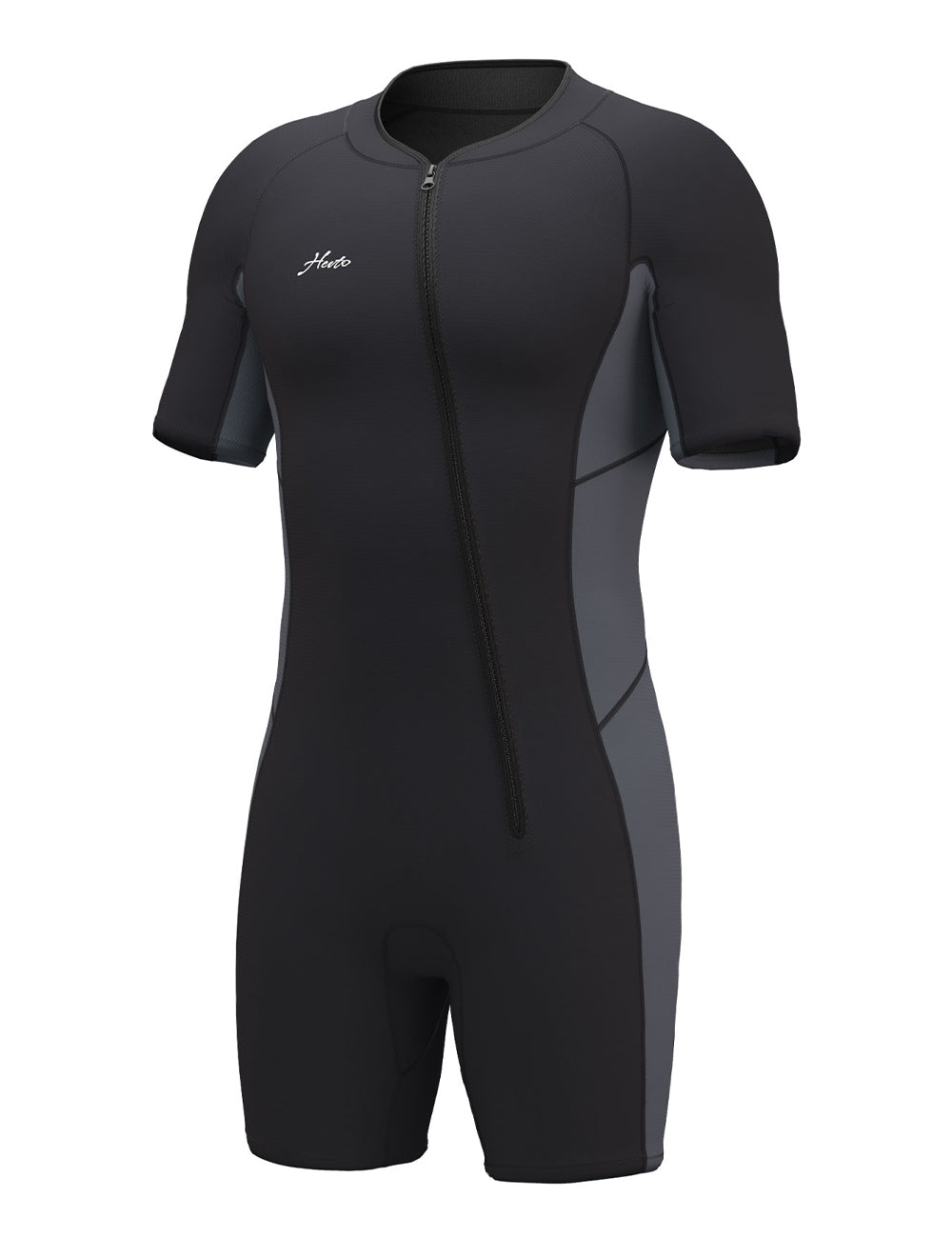 Men Shorty Wetsuit 2mm Grey Front Zip for Warm Water Sports