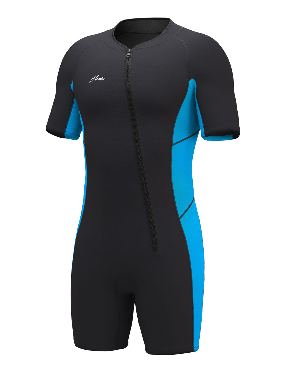 Men Wetsuit Shorty 2mm Blue Front Zip for Warm Water Sports