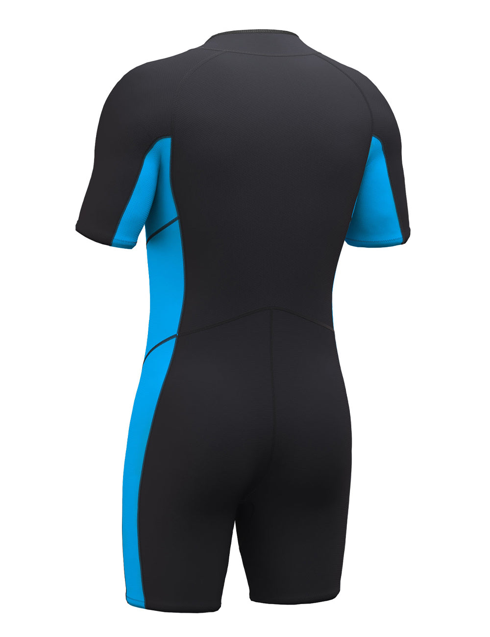 Men Wetsuit Shorty 2mm Blue Back Zip for Warm Water Sports