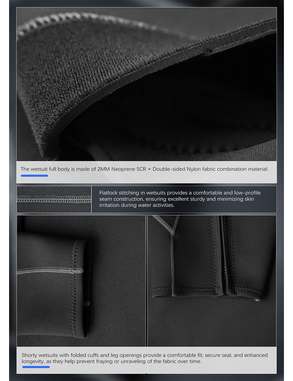 Warm Water Ready: The 2mm neoprene material delivers just the right amount of warmth for activities like swimming, diving, and kayaking in warmer conditions. Its shorty design enhances comfort and reduces bulk.